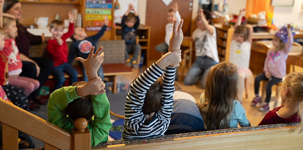 Wir sehen unsere Aufgabe darin, Orientierung zu geben und einen Rahmen zu setzen, in dem die Kinder ein möglichst hohes Maß an Selbst- und Mitbestimmung haben. Durch gelebte Partizipation erfahren Kinder, wie soziale Gemeinschaften funktionieren und eignen sich demokratische Kompetenzen an.