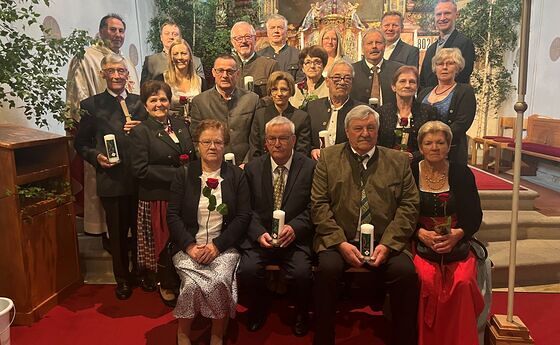 Am Fronleichnamssonntag feierten wir heuer das Fest der Ehejubilare. Drei silberne, zwei rubine und vier goldene Jubelpaare nahmen die Einladung von Pfarre und Gemeinde an, um gemeinsam für die langen Jahre des Zusammenseins zu danken und Gottes Segen für die Zukunft zu erbitten.