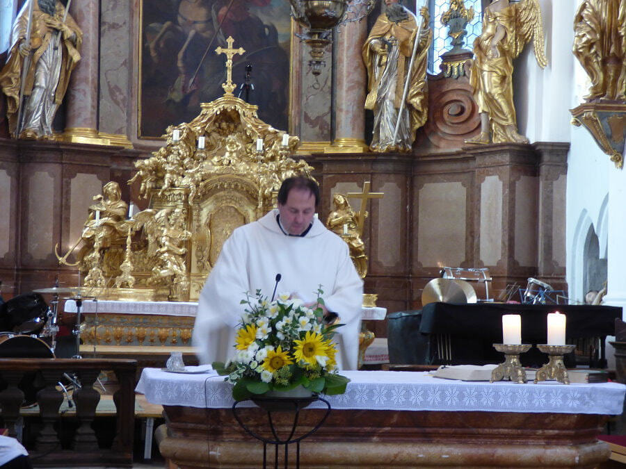 Am Samstag, 20. Oktober fand unsere diesjährige Herbstwallfahrt nach Pfarrkirchen bei Bad Hall statt. Die sehr schöne Rokokokirche ist dem Hl. Georg geweiht und beeindruckte uns durch die vielen Fresken und Darstellungen. P.Leopold erklärte einige Darstellungen und hielt anschließend die Hl. Messe. P. Hubert stellte sich als Beichtpriester zur Verfügung.