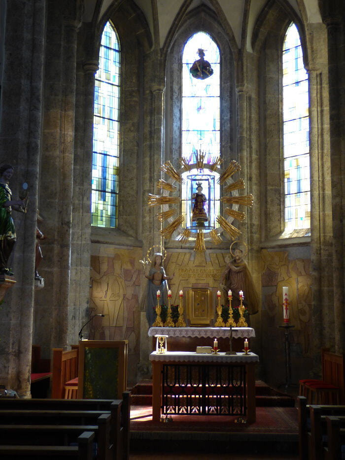 Die heurige Herbstwallfahrt am 21. Oktober 2017 ging nach Frauenstein bei Molln. Abfahrt war um 8:00 h in St. Konrad und die Messe feierten wir um 9:00 h in der neu renovierten Kirche von Frauenstein. Anschließend besichtigten wir die Kirche und das Grab vom bekannten Entertainer Hans Joachim Kulenkampff. Bevor wir unser Mittagessen im GH Schinagl in Klaus einnahmen fuhren wir noch kurz zum Stausee, der in eine farbenprächtige Herbststimmung ein sehr ansprechendes Bild bot. Da es für einen Spaziergang etwas zu kühl war, verkürzten wir dort den Aufenthalt und fuhren zum Mittagessen weiter.