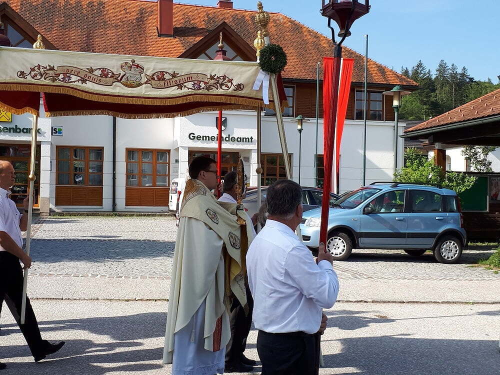 Bei strahlendem Wetter wurde die Fronleichnamsprozession mit P. Bernhard und dem Priminzianten Florian P. aus Norddeutschland, der zur Zeit Urlaub im Stift Kremsmünster macht, unter der Mitwirkung der Vereine und den Erstkommunionkindern abgehalten. Die Messe mit dem Priminzsegen wurde dann anschließend gefeiert. Die zeitliche Verzögerung möge einer guten inneren Vorbereitung zu Gute gekommen sein.
