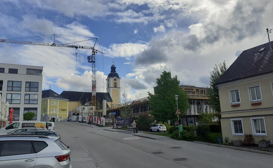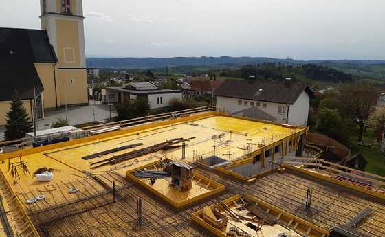 Die 2te Decke ist eingeschalt ...und fast bereit zum betonieren. Anfang Mai wurde auch der Durchgang zum Pfarrhof fertig betoniert. mehr: Die 2te Decke ist eingeschalt