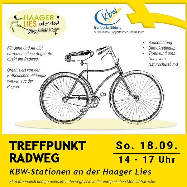 Das Katholische Bildungswerk-Treffpunkt Bildung der Dekanate Kallham und Gaspoltshofen organisieren gemeinsam einen Radtag mit Stationenbetrieb entlang der Haager Lies.