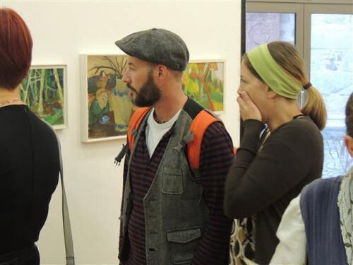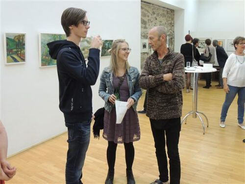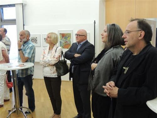 Er begrüßt die zahlreich erschienen Gäste, die Ehrengäste aus Kirche und Politik, die Musiker des Abends und die Künstlerin. Im Anschluss gibt Katrin Primetshofer Roithinger Einzelheiten über ihre Arbeit und das Loslassen ihrer Bilder preis.: "Künstlerische Arbeit ist eine Aussage über mich selbst"
